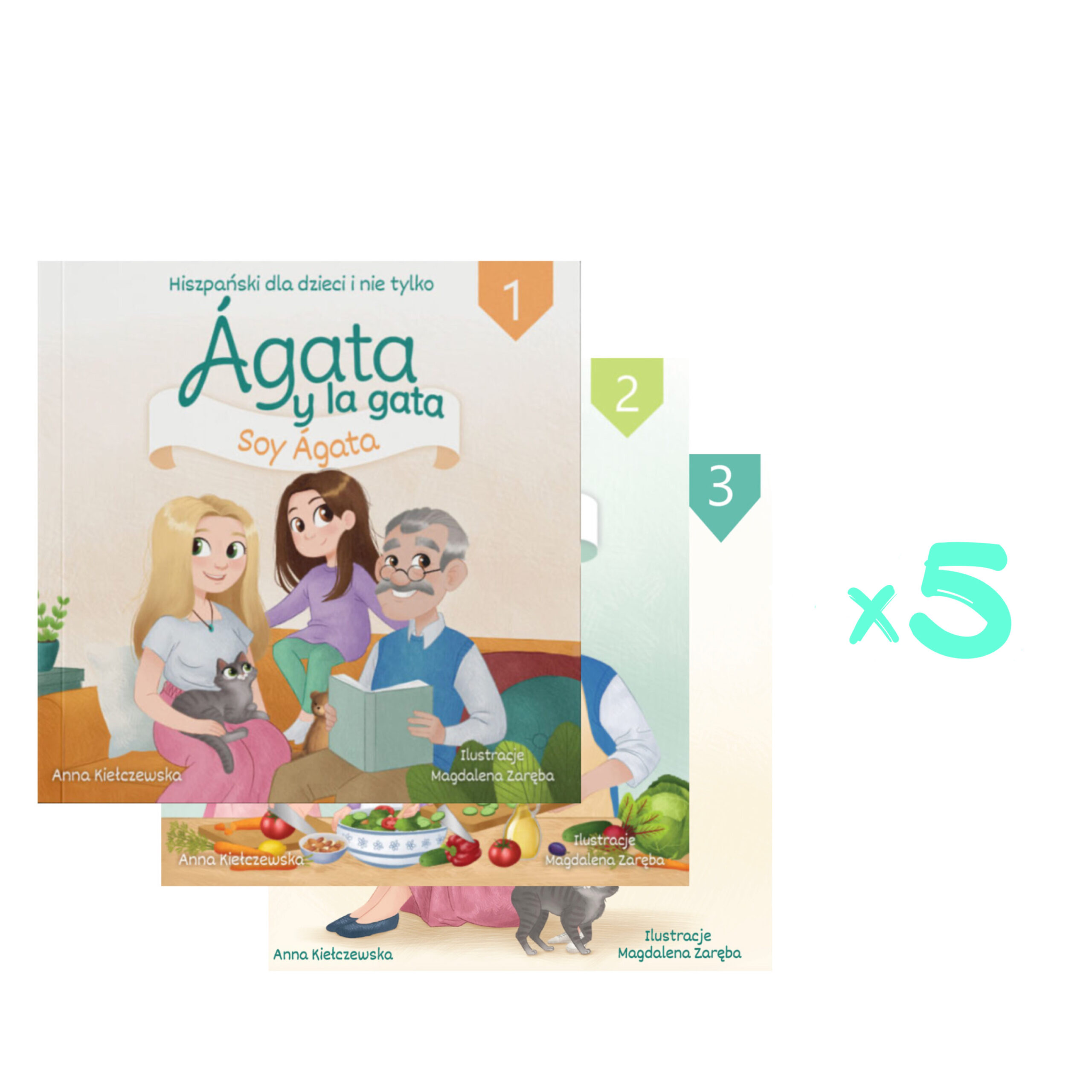 5 kompletów książeczek (po 5 egzemplarzy każdej (1,2,3) części)